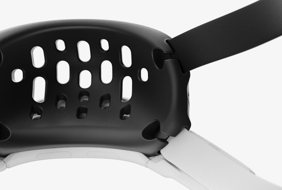 At the base of the impact plate, open-air columns strategically channel sweat away from the skin to release freely during play. Up top, continuous air flow to the chin promotes quick sweat evaporation, less material friction, and a reduction in harmful irritation. We value player's skin health and improved comfort through our design & tech.