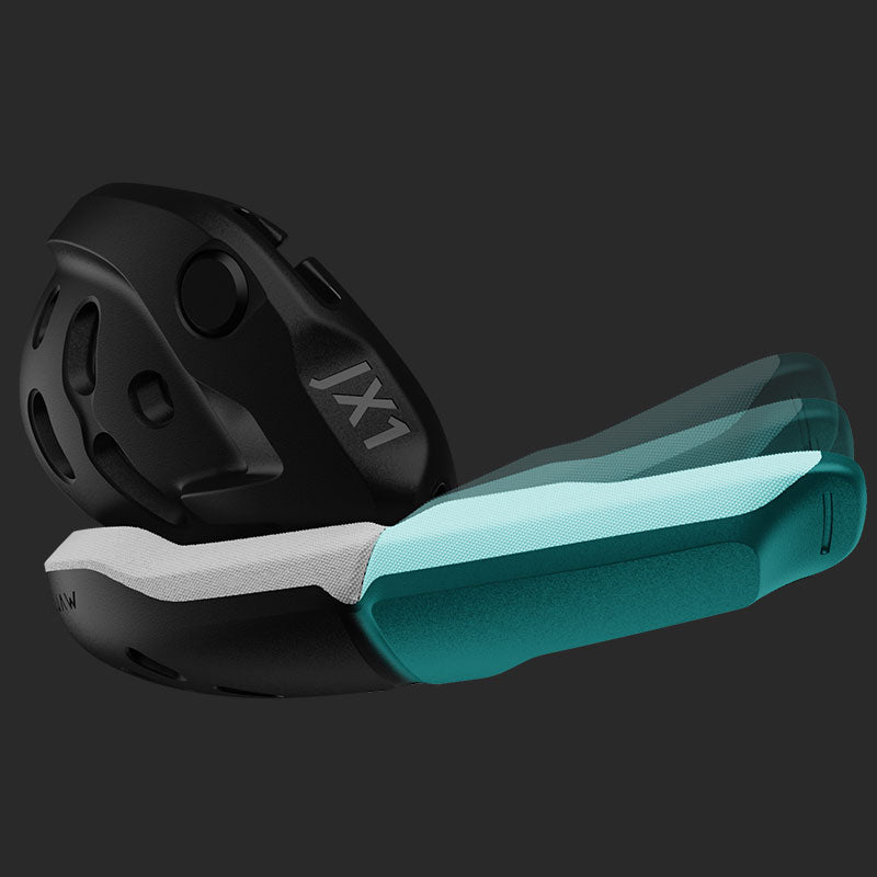 Built to absorb force from direct impacts to the jawline, the JX1 padding system -- in tandem with the impact plate -- offers dual-layer protection. Our hinge-system allows for a flexible adjustment of the jaw pads to fit all facial structures.